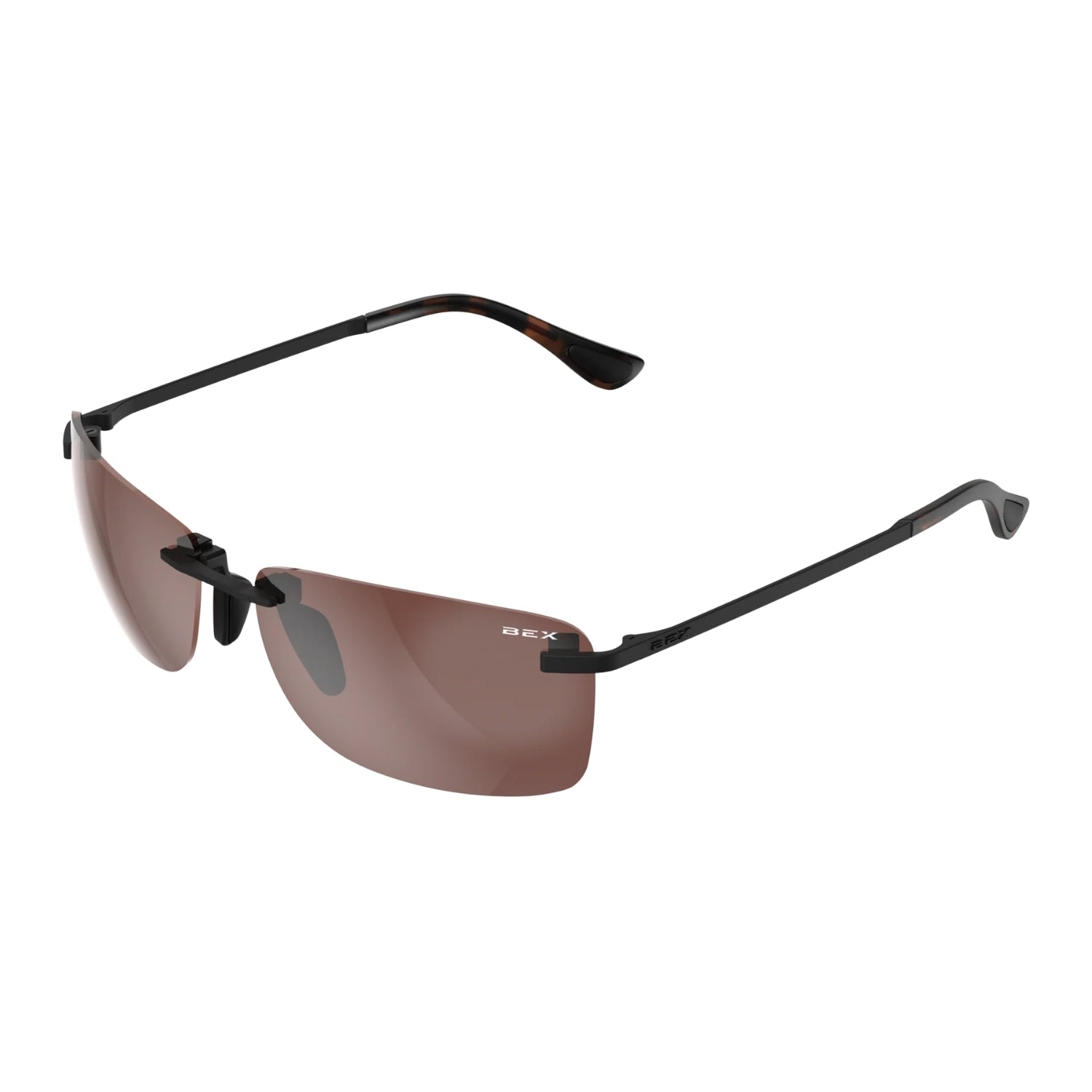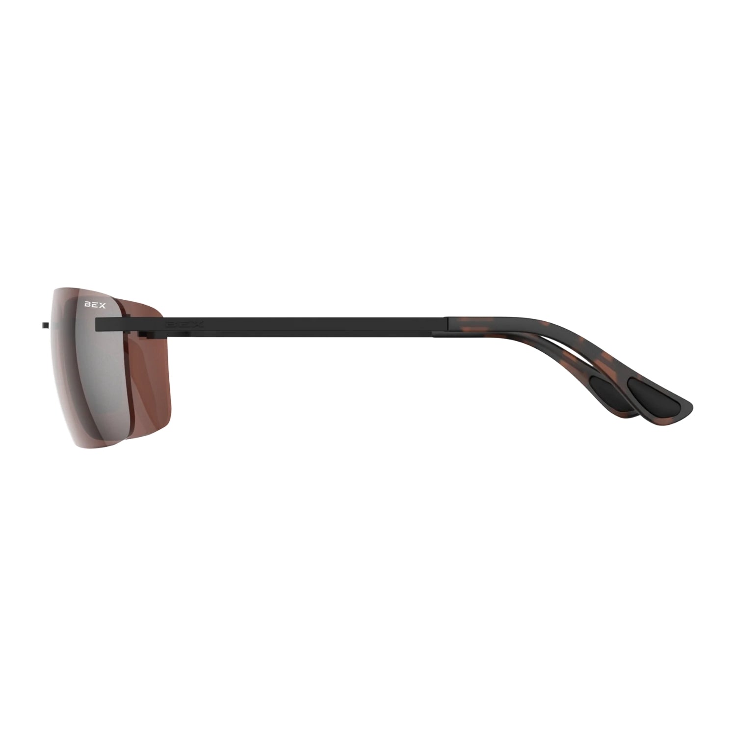 • Matte black finish with polished tortoise brown temple tips for a refined aesthetic.