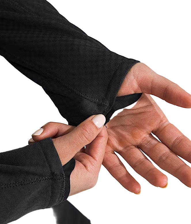 • Flat-sewn elastic cuffs with integrated thumb loops