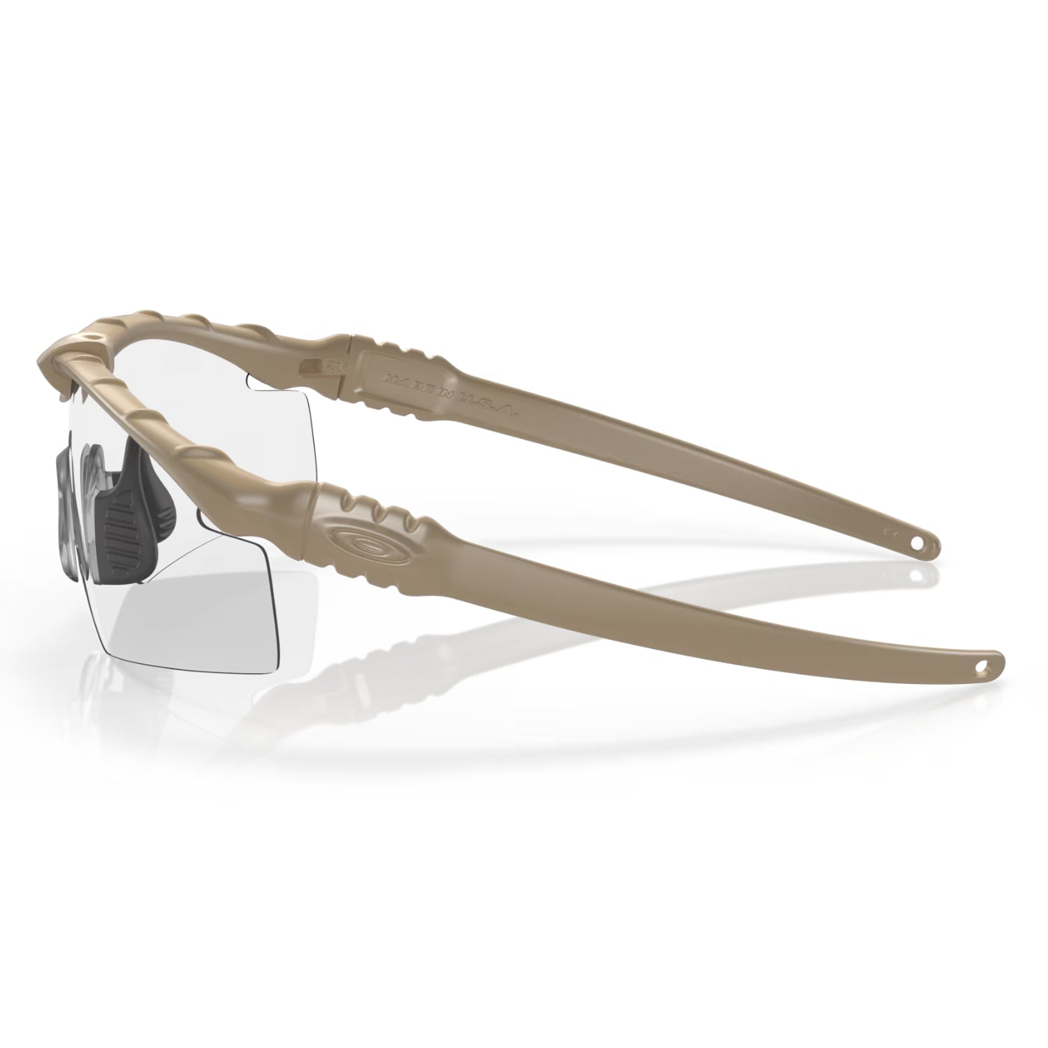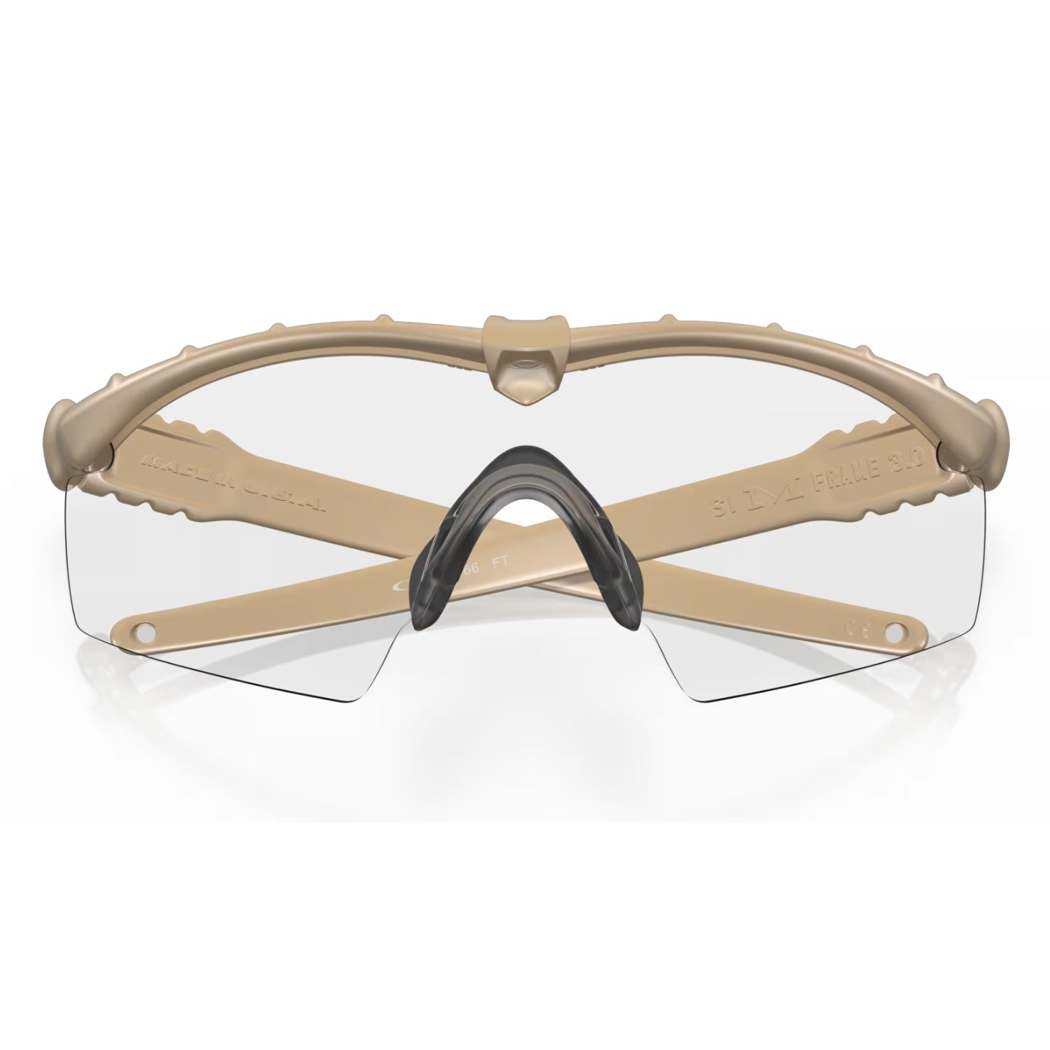 The Oakley SI Ballistic M Frame 3.0 surpasses ANSI Z87.1 Industrial Standards for high-mass and high-velocity impact protection. The M Frame 2.0 additionally meets MIL SPEC MIL-PRF 31013. All lenses are made of pure Plutonite®, a proprietary material that offers the highest level of optical clarity available in eyewear. It also features a clip that holds the lens and frame together providing more secure support.