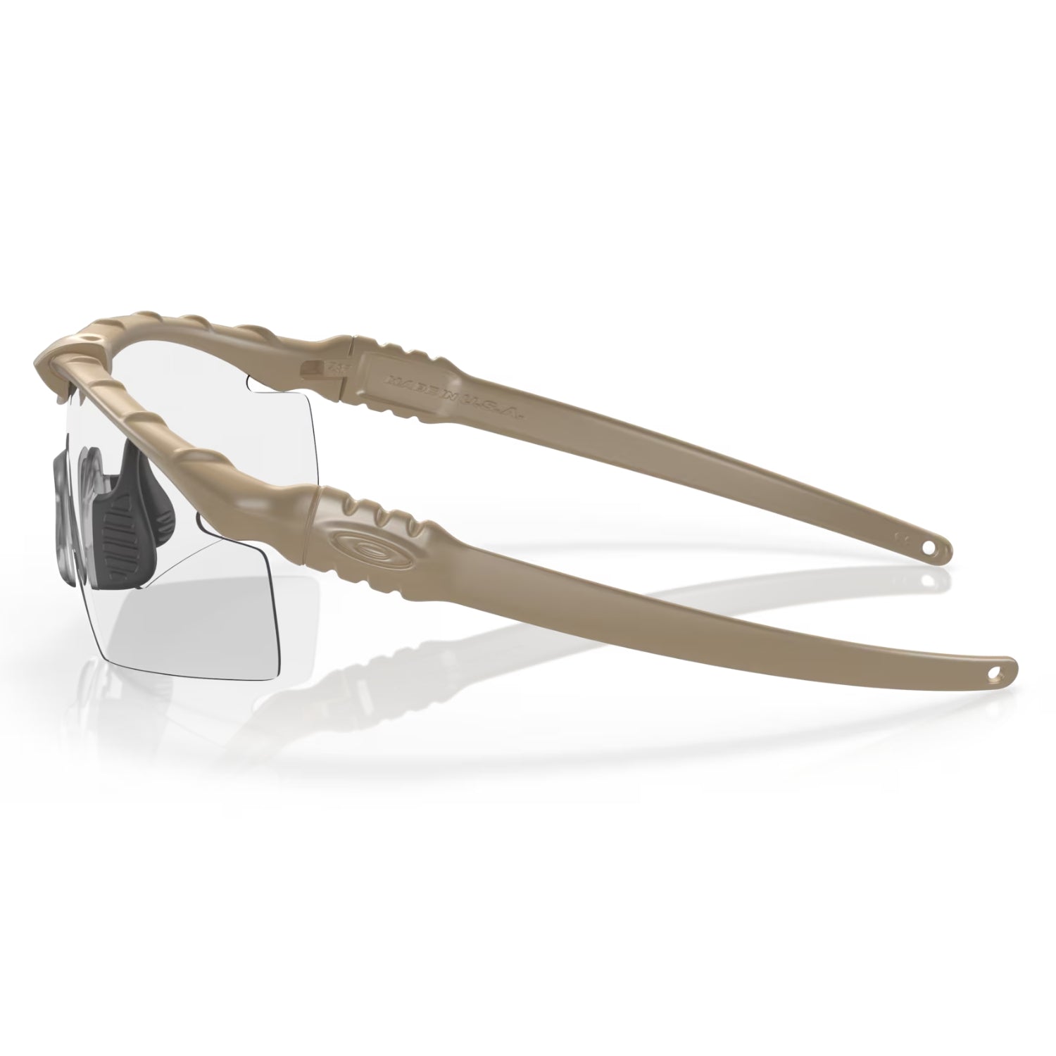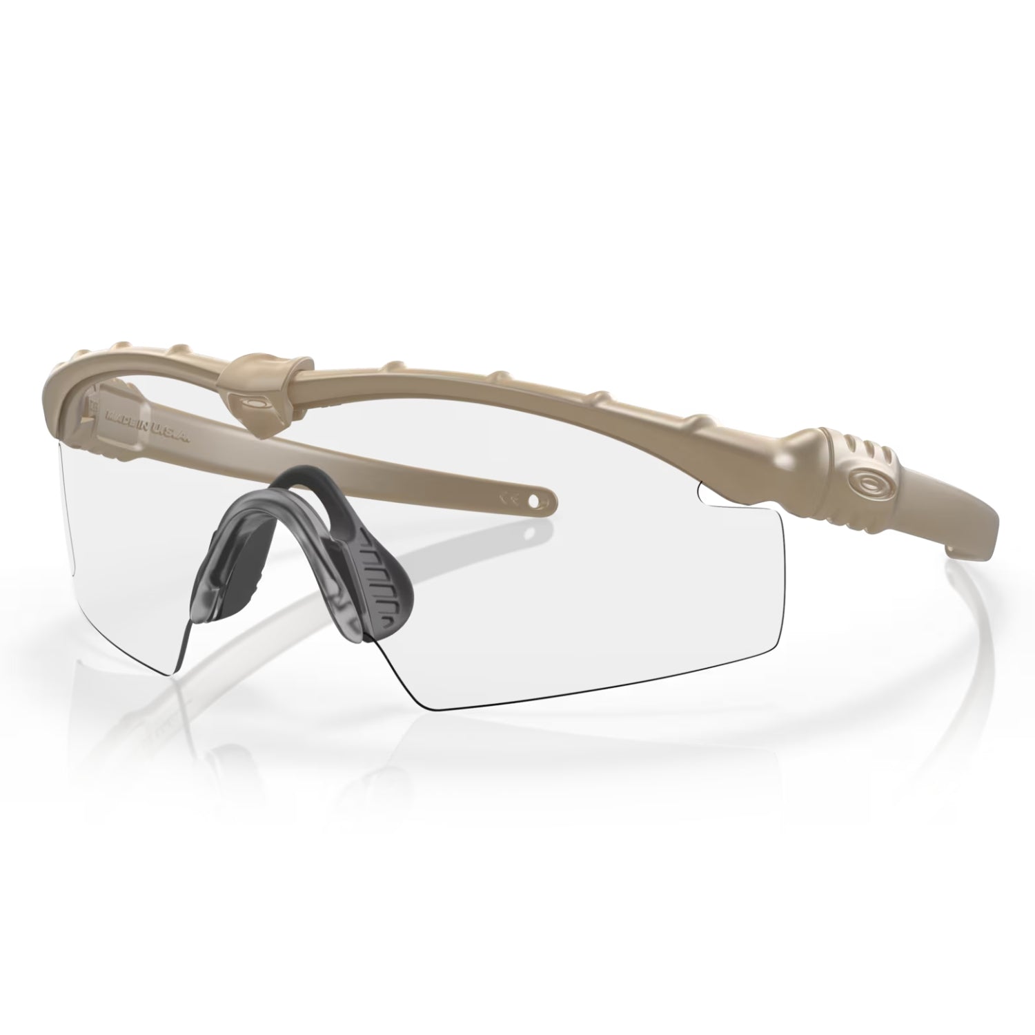 The Oakley SI Ballistic M Frame 3.0 surpasses ANSI Z87.1 Industrial Standards for high-mass and high-velocity impact protection. The M Frame 2.0 additionally meets MIL SPEC MIL-PRF 31013. All lenses are made of pure Plutonite®, a proprietary material that offers the highest level of optical clarity available in eyewear. It also features a clip that holds the lens and frame together providing more secure support.