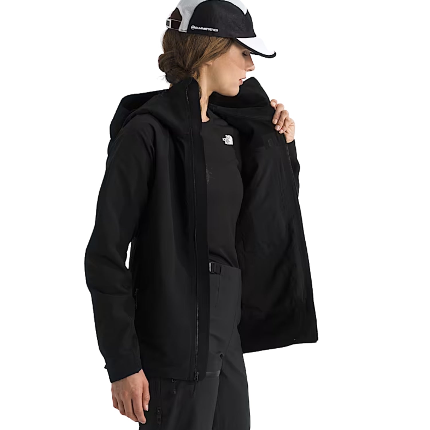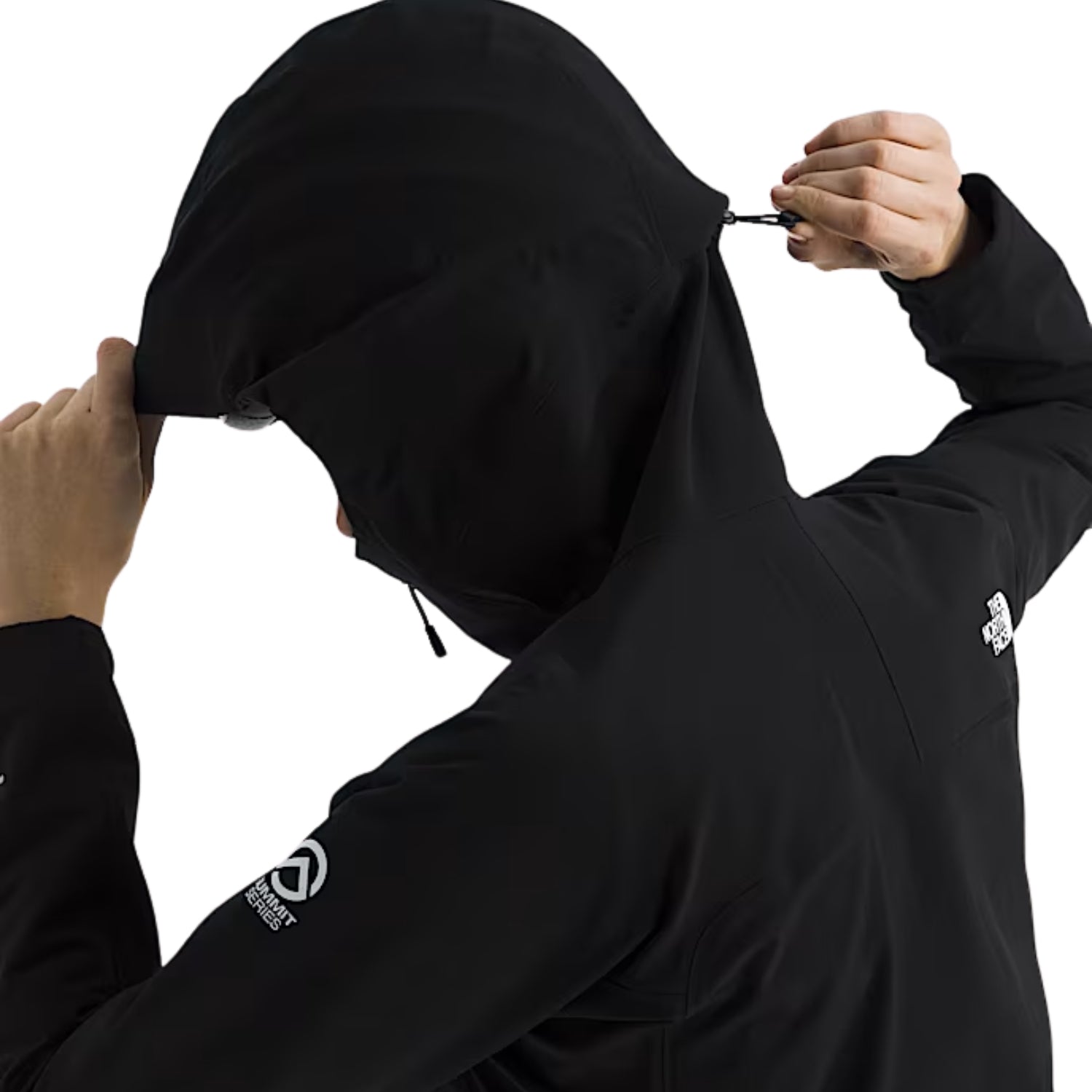 - Adjustable, climbing-helmet-compatible hood with a pre-tensioned elastic opening for a secure fit and a cinch-cord with a cord lock in back